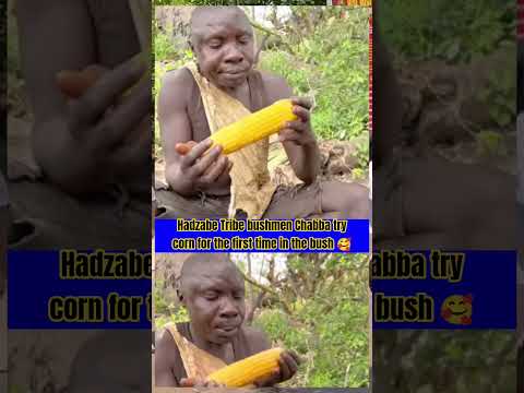 Hadzabe Tribe bushmen Chabba try corn for the first time in the bush 🥰