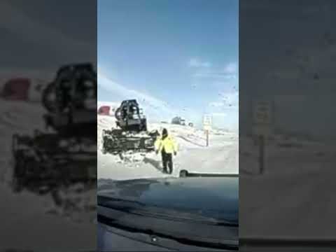 Trucker trying to maneuver around crash takes a tumble down a snowy hill #americantruckdrivers