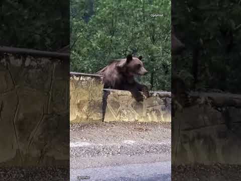 A woman attacked by a bear on a bridge in the middle of nature😱