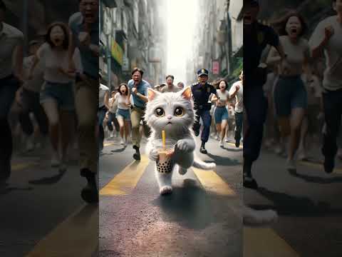 Caught stealing treats… now the cat’s on the run from the cops 🐱🚓 #ai #cat #shorts #viral #funny