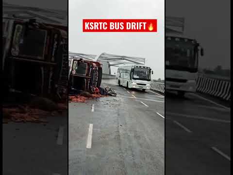 KSRTC BUs Drifting on wet road😱 #drift #bus #accident #truck #india #road #miss #escape #lucky #fun