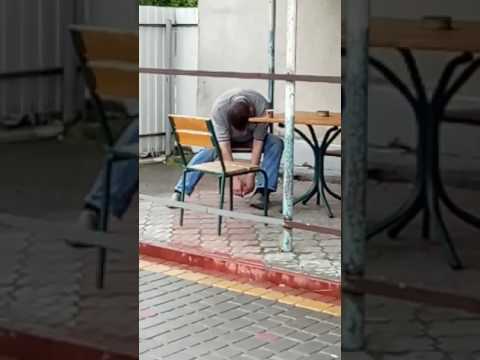 Drunk russian miner - drunk man in mud comedy