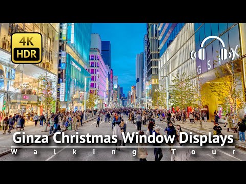 Ginza Christmas Window Displays Walking Tour 2025 [4K/HDR/Binaural]