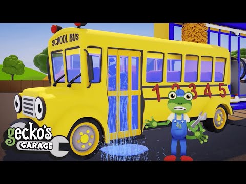 Sammy The School Bus' Carwash Trouble!|Gecko's Garage|Truck Cartoons For Kids|Education and Fun!