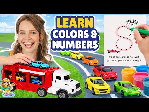 Colors, Counting, & Numbers w/ Silly Miss Lily, Cars & Car Carrier! Best Toy Toddler Learning Videos