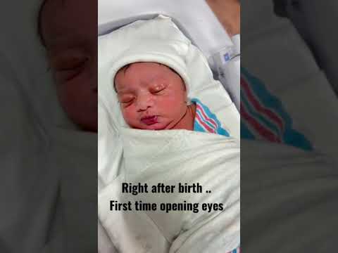 Baby opening his eyes first time after birth.