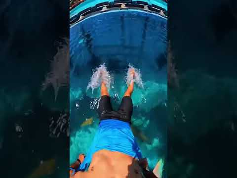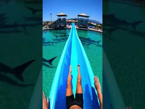 Waterslide into pool full of giant fish #funny #memes #Shorts #Pool #Trending #ViralClips #Viral