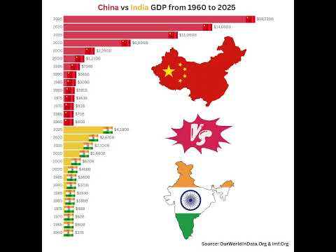 India vs China GDP Comparison (1960โ2025) #india #china #indiagdp #chinagdp #economy2025 #asia