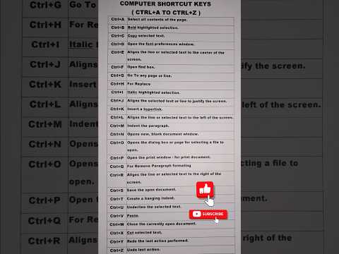 Ctrl A to Z Computer shortcut key in Hindi #computer #viral #ccc #shortvideo #ytshorts #tricks #key