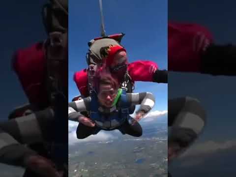 Woman has second thoughts going sky diving for the first time