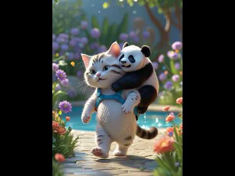 Adorable Cat Saves Baby Panda β Cutest Moment Ever! #cute #cartoon #panda #cats #viralshorts