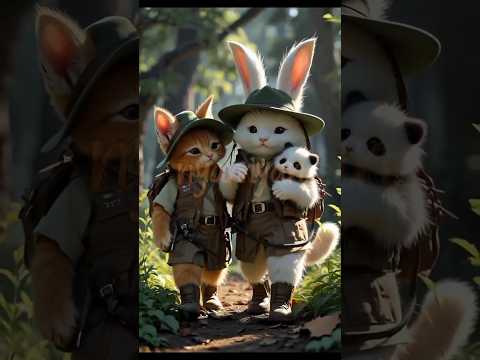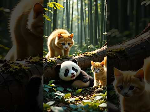 A cute orange kitten saves a baby panda #cat #cute #kitten #ai