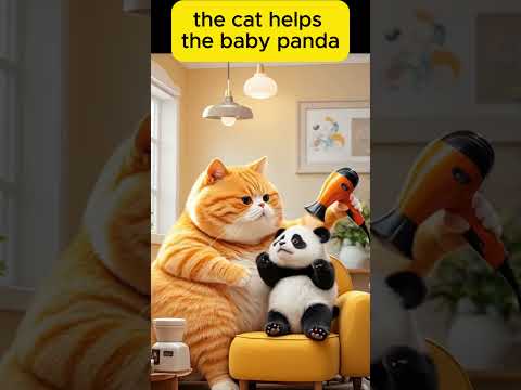 the cat helps the baby panda #cat #funny #funnycats #funnyanimals #catlover #animation