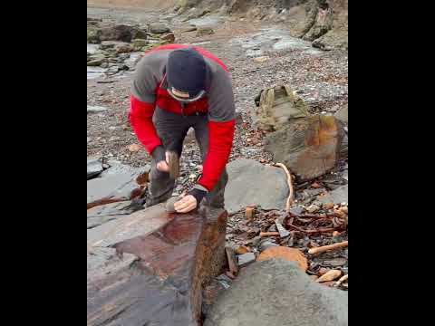 Cracking open a huge nodule that's fresh from the cliffs! 🪨🔨 #fossilhunting #fossils #shorts #coast