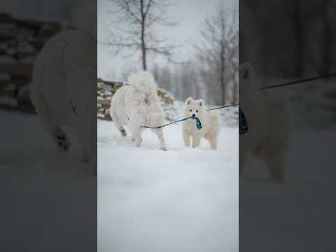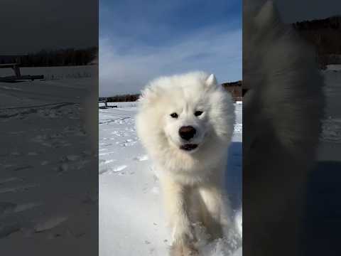 βοΈ SAMOYED DOG IN THE SNOW #dogshorts #samoyed