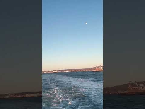 🌊 🛥️ #rockland #harbor #maine #moon #sunrise #ocean #mountains #vacationland #travel #visit #ferry