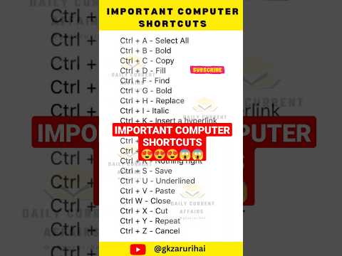 Important Computer Shortcut keys | Ctrl a to z shortcut keys #shorts #computer #youtubeshorts
